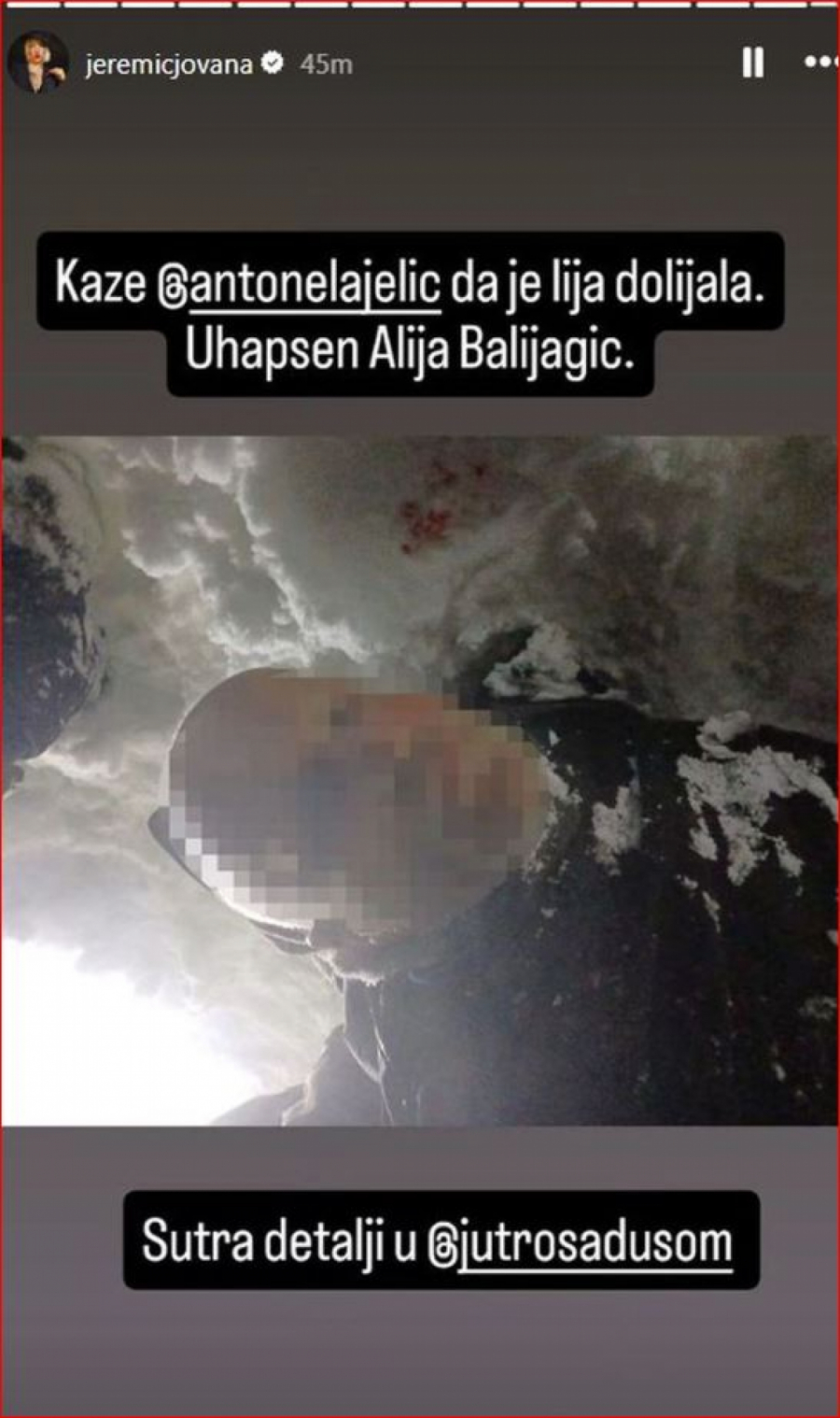 Na svom Instagram profilu Jovana je objavila Alijinu fotografiju koja je nastala prilikom hapšenja.