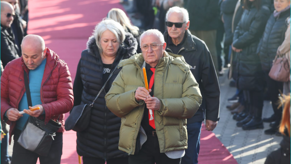 U rukama je nosio ogroman venac i nije mogao da sakrije tugu na licu.