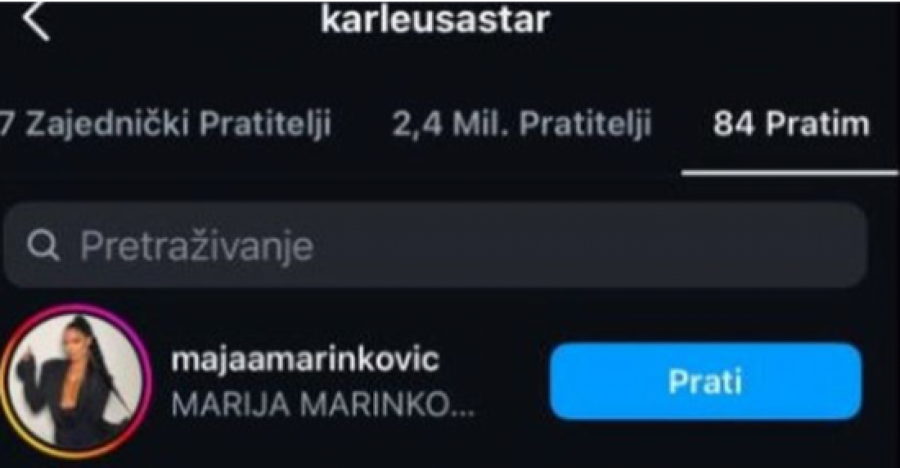 Pop diva Jelena Karleuša izazvala je lavinu komentara na društvenim mrežama nakon što je na svoju listu od samo 85 ljudi koje prati na Instagramu dodala rijaliti zvezdu Maju Marinković.