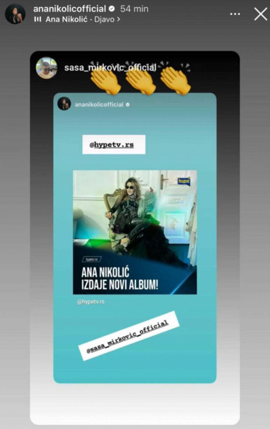 Vlasnik Hype produkcije i Anin bivši menadžer, Saša Mirković, zakopao je ratne sekire sa pevačicom, te joj pružio podršku objavivši njene nove pesme na svom Instagram profilu.