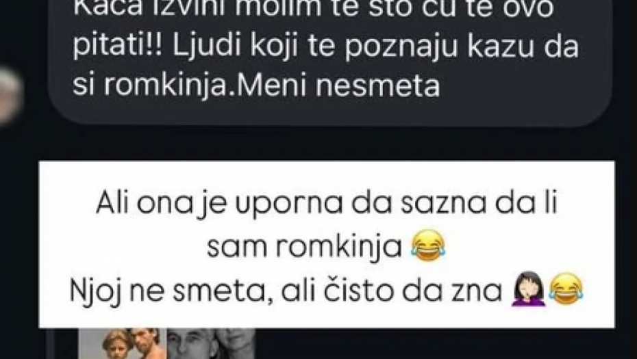 - Ali ona je uporna da sazna da li sam Romkinja. Njoj ne smeta, ali čisto da zna - napisala je Katarina.