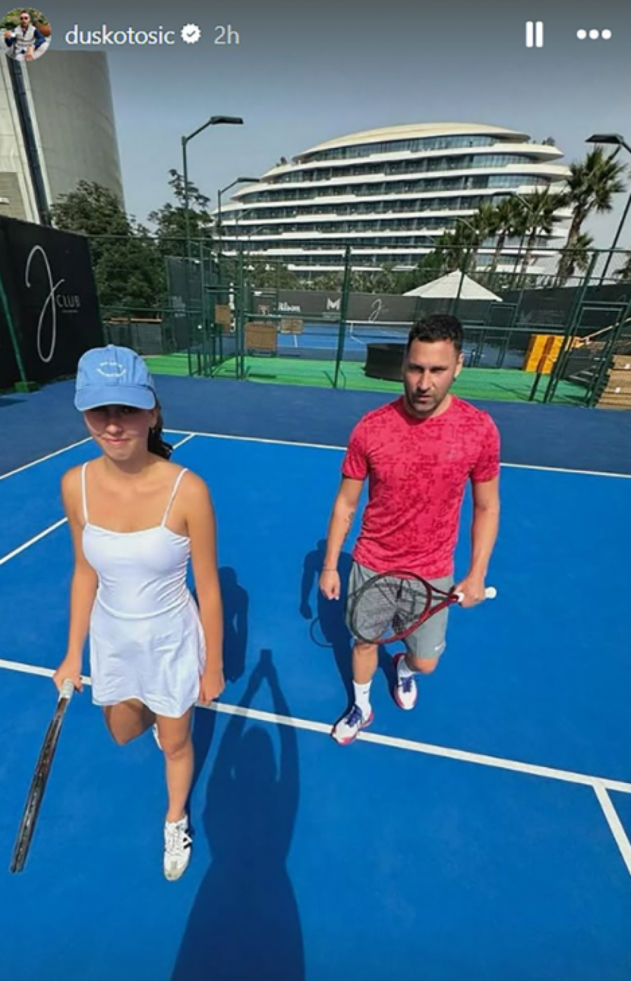 Budući da je fudbaler i da mora da vodi računa o svojoj formi logično je da je u fizičkim aktivnostima a ovaj put se odlučio za tenis gde mu društvo pravi Atina, a pretpostavljamo da ih je Nika slikala.