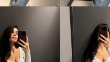 Naime, Jovana je pozirala u farmerkama, a majicu je podigla kako bi pokazala isklesane trbušnjake.