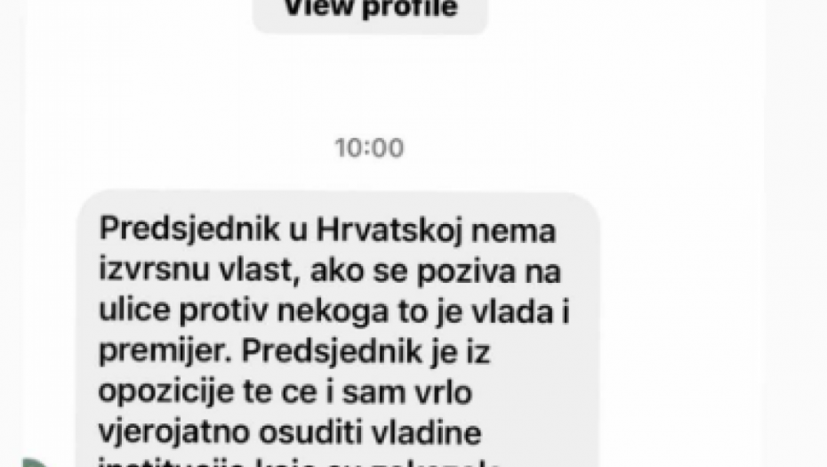- Predsednik u Hrvatskoj nema izvršnu vlast, ako se poziva na ulice protiv nekoga, to su Vlada i premijer. Predsednik je iz opozicije, te će i sam vrlo verovatno osuditi vladine institucije koje su zakazale - glasila je poruka koja je stigla na Jeleninu adresu.