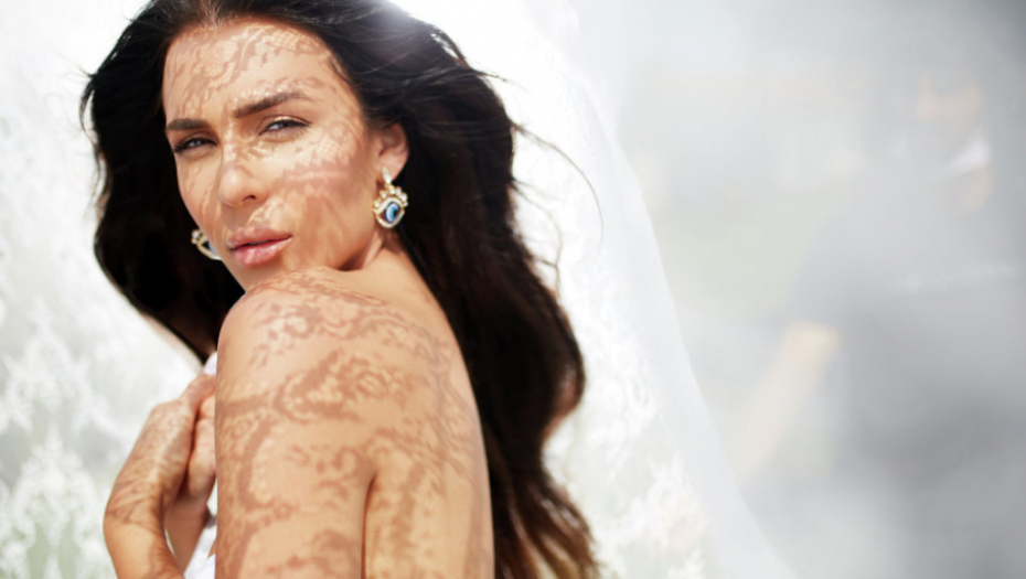 Sedela je pored bazena sa savršenim bronzanim tenom. Oko vrata je nosila ogrlicu od malih školjki i lančić sa priveskom, a reč je o slovu A, dok joj je desnu nogu krasila narukvica.