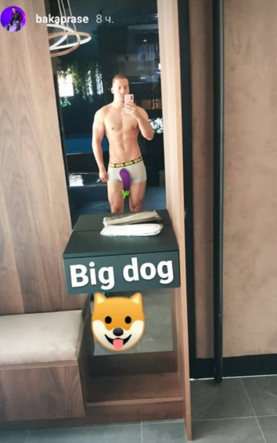 On je zbog toga u opisu videa napisao "gej", misleći na momka koji ga je posmatrao. Pre toga se u svlačionici dičio svojim ponosom, koga je nazvao "Big Dog" ili "Veliki Pas".