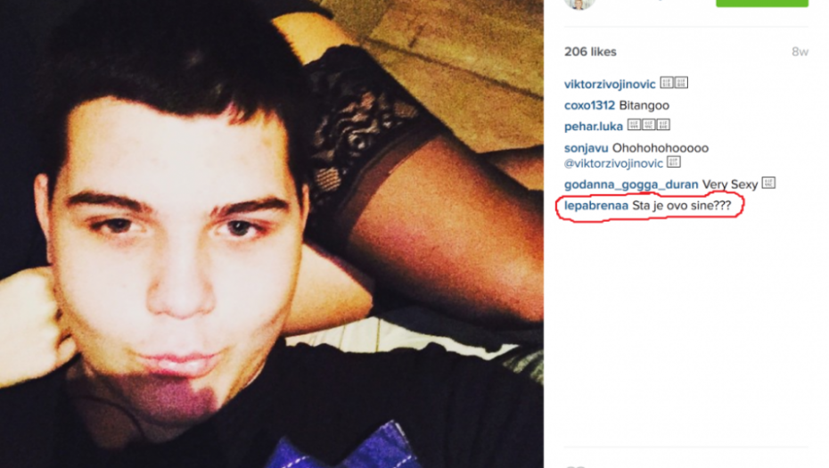 Mlađani Viktor objavio je na Instagramu provokativnu fotografiju na kojoj leži na devojci koja nosi seksi čarape. Fotka je dobila gomilu lajkova, ali Lepa Brena je ostala zatečena prizorom i ostavila komentar.