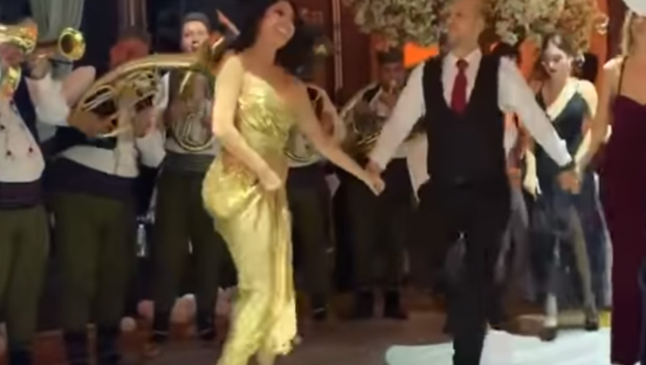 Svi svatovi uhvatili su se oko nje, a kako je to izgledalo pogledajte u snimku ispod.