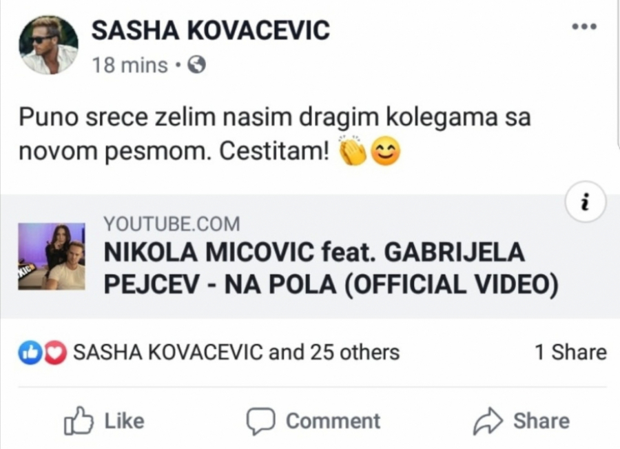 Gabrijela Pejčev i Nikola Mićović predstavili su spot za duetsku pesmu pod nazivom “Na pola”, a promociji koja je organizovana u poznatom prestoničkom hotelu “Constantine The Great” prisustvovale su brojne kolege i prijatelji mladih zvezda u usponu. Uoči promocije pesmu su na društvenim mrezama objavili i pohvalili Ceca Ražnatović, uz komentar: "Bravo, pokidali ste", a čestitkama se pridružio i njen kolega pop zvezda Saša Kovačevic: "Mnogo sreće mojim dragim kolegama sa novom pesmom i čestitam im od srca". Čestitkama se pridruzila i pop zvezda Jelena Tomaševic na svom Instagram profilu.