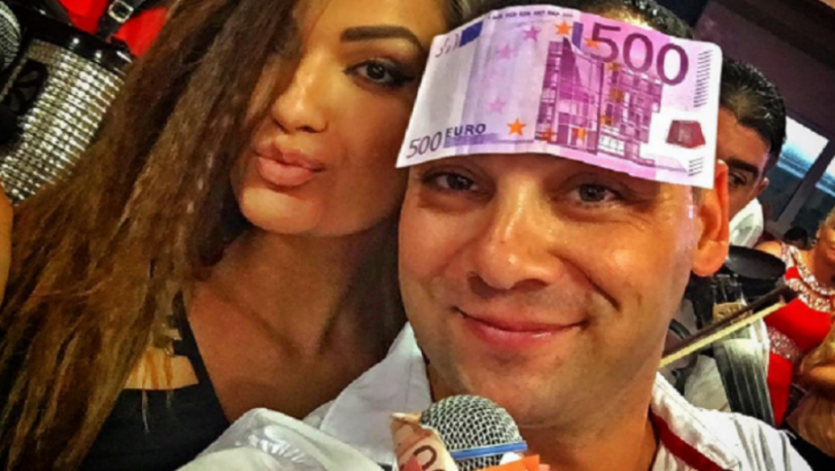 Pevač je na Instagramu podelio fotografije sa nastupa na jednom privatnom slavlju u Petrovcu, dok mu je mikrofon, kao i čelo bilo "okićeno" evrima.