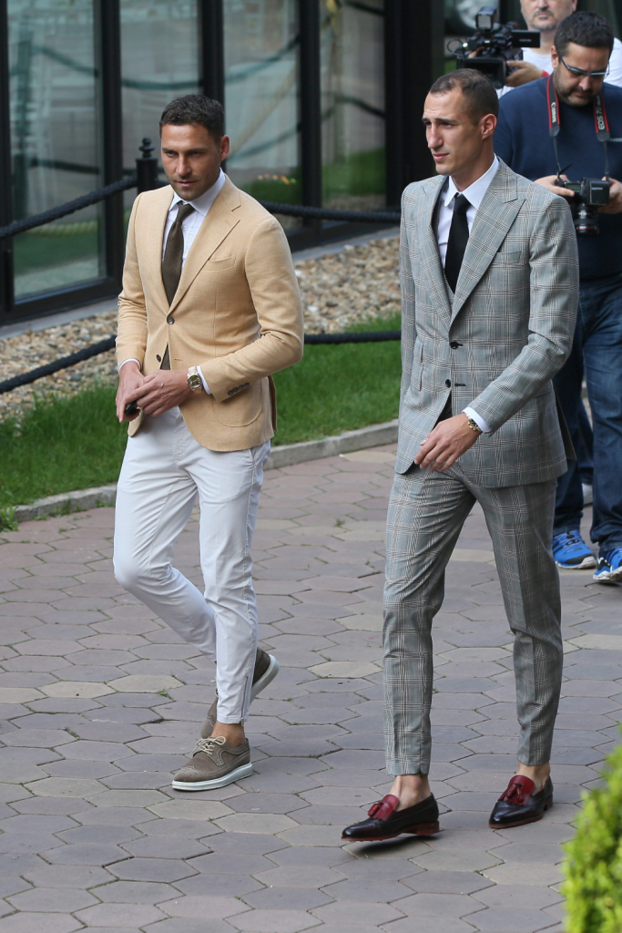 Gosti pristižu na slavlje, a među njima i fudbaler Duško Tošić koji je obučen u odelu svetlijih nijansi.