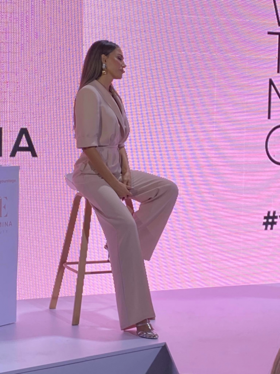 Emina se pojavila u elegantnom kombinezonu sa dubokim dekolteom koji je plenio mnoge poglede. Emina je sa oduševljenjem pričala o proidzvodima koje je pripremila za dame, jer želi da se dame dobro osećaju u svojoj koži.