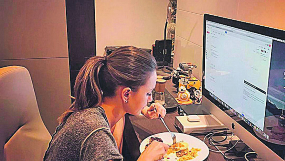 Međutim, ona je našla idealan način da radi, a u isto vreme i da ima obrok, a sliku na kojoj jede za kompjuterom podelila je sa svojim fanovima.