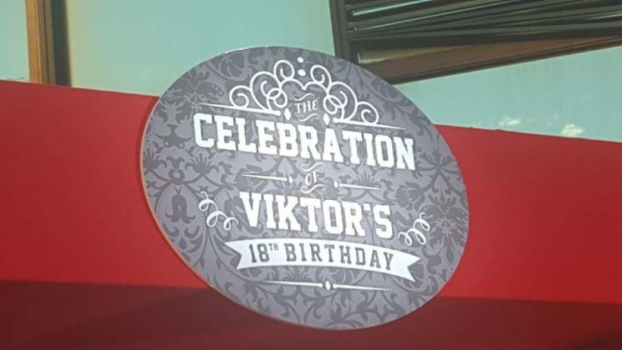 Kako zvanice, koje su stizale iz čitavog sveta, slučajno ne bi zalutale, na ulazu u halu ih je dočekao natpis "Proslava Viktorovog 18. rođendana".