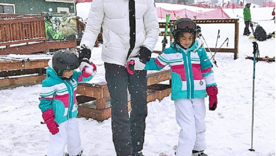 On je sa naslednicama odlučio da se odmori na planini, gde ih, kao pravi ljubitelj sporta, uči skijanju.