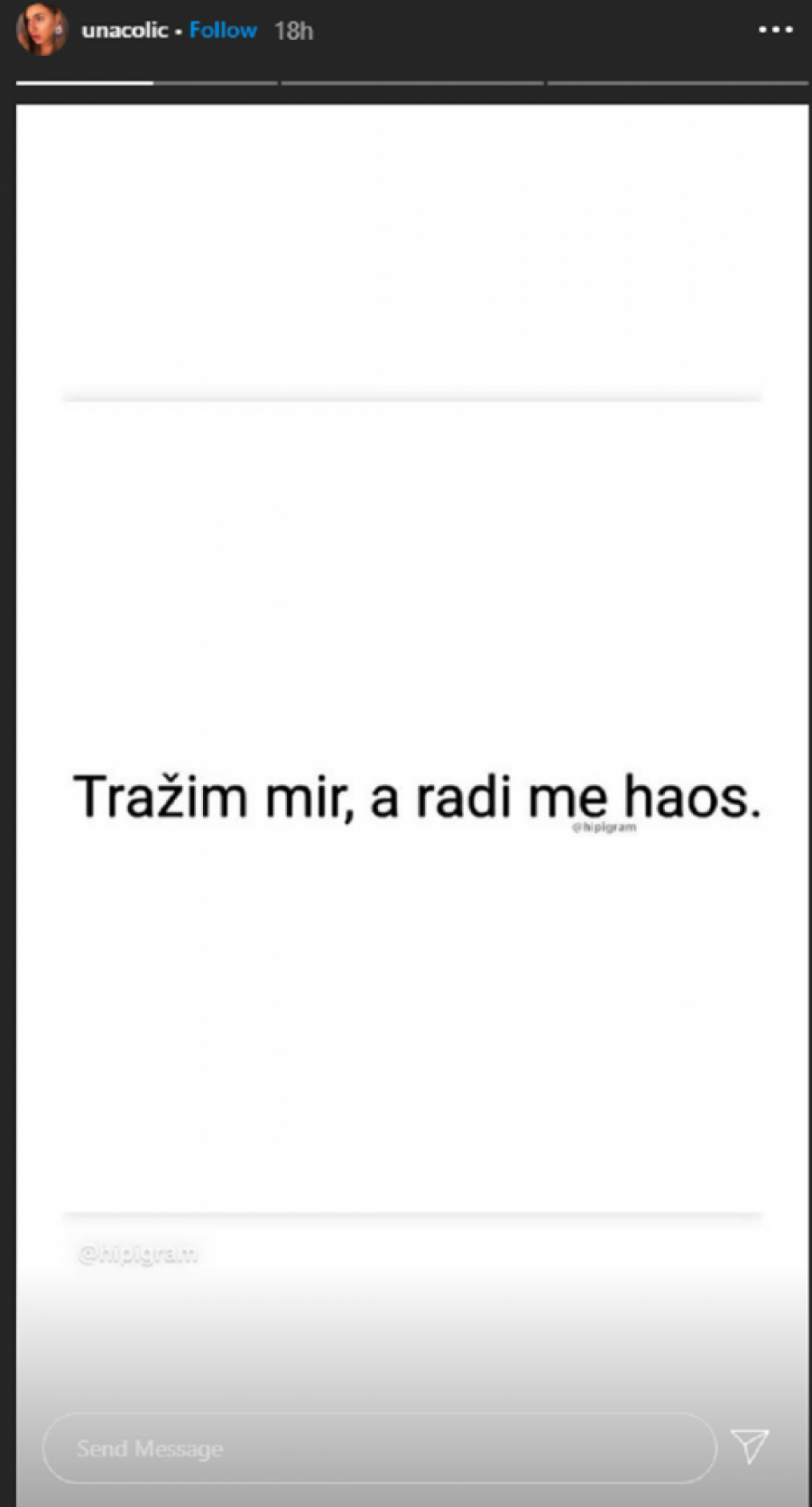 Naime, Una je objavila sledeće poruke: "Tražim mir, a radi me haos", " Izrazi se" što je mnoge zaintrigiralo.