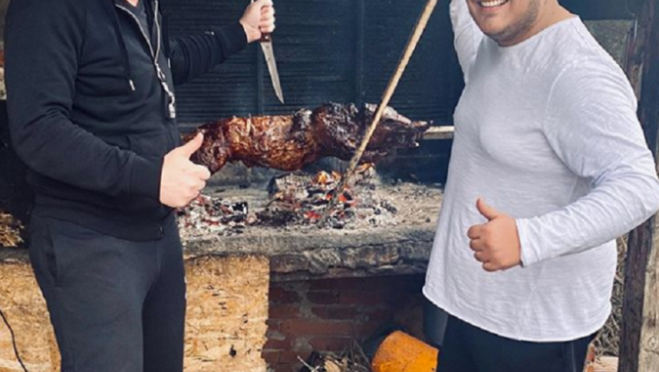 Njih dvojica su se slikali pored praseta na ražnju, a fotografiju je Krečar objavio na svom Instagramu. Ali, kako smo saznali, mrsni specijalitet kasnije je probao samo Krečar, dok je Lazić, koji je i dalje u fazi mršavljenja posle operacije želuca, bio samo posmatrač.