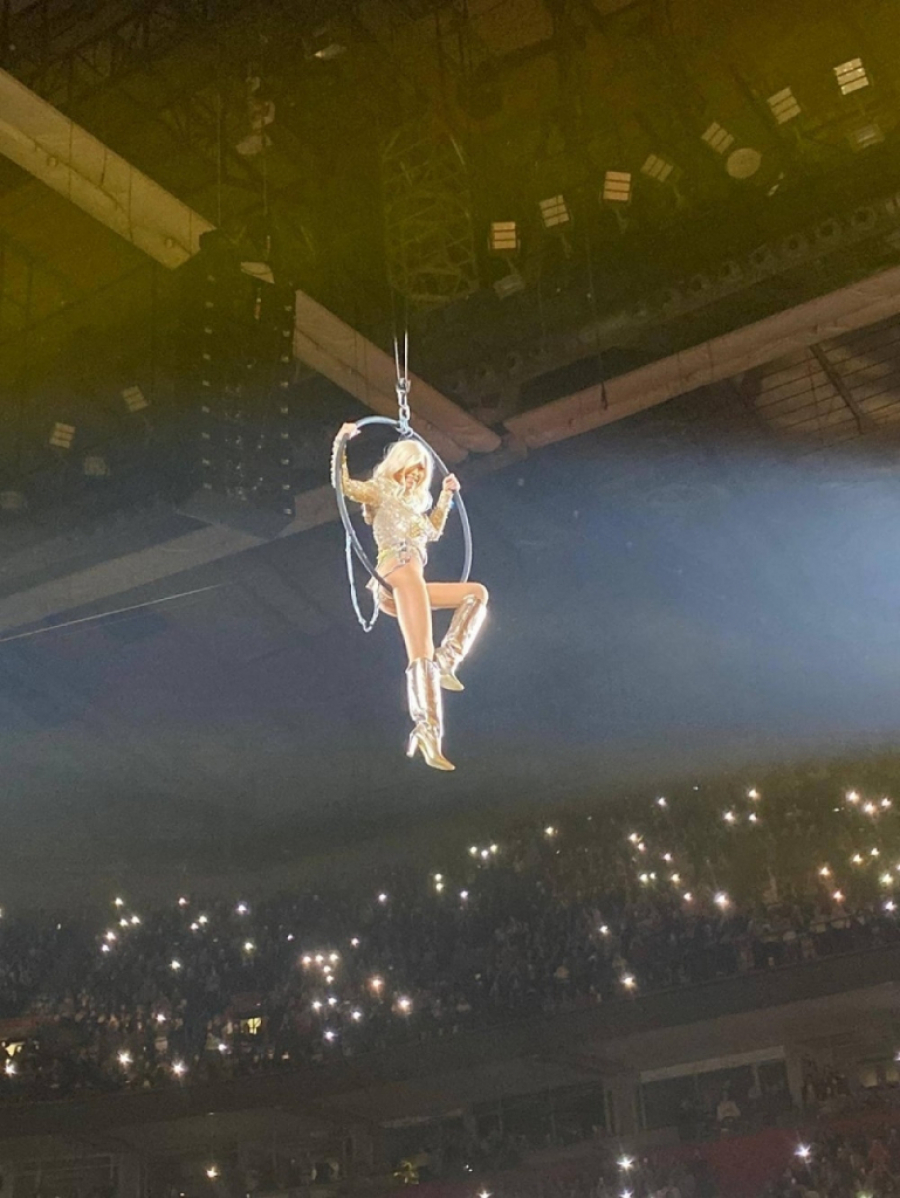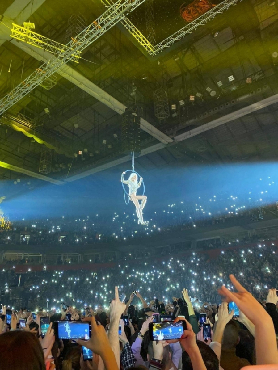 Pevačica se pojavila sa drugog kraja hale na obruču izvodila akrobacije, a prva pesma bila je "Ja sam dobro". Oduševljena publika uglas je pevala sa Natašom, koja je svetski odradila svoj scenski nastup.