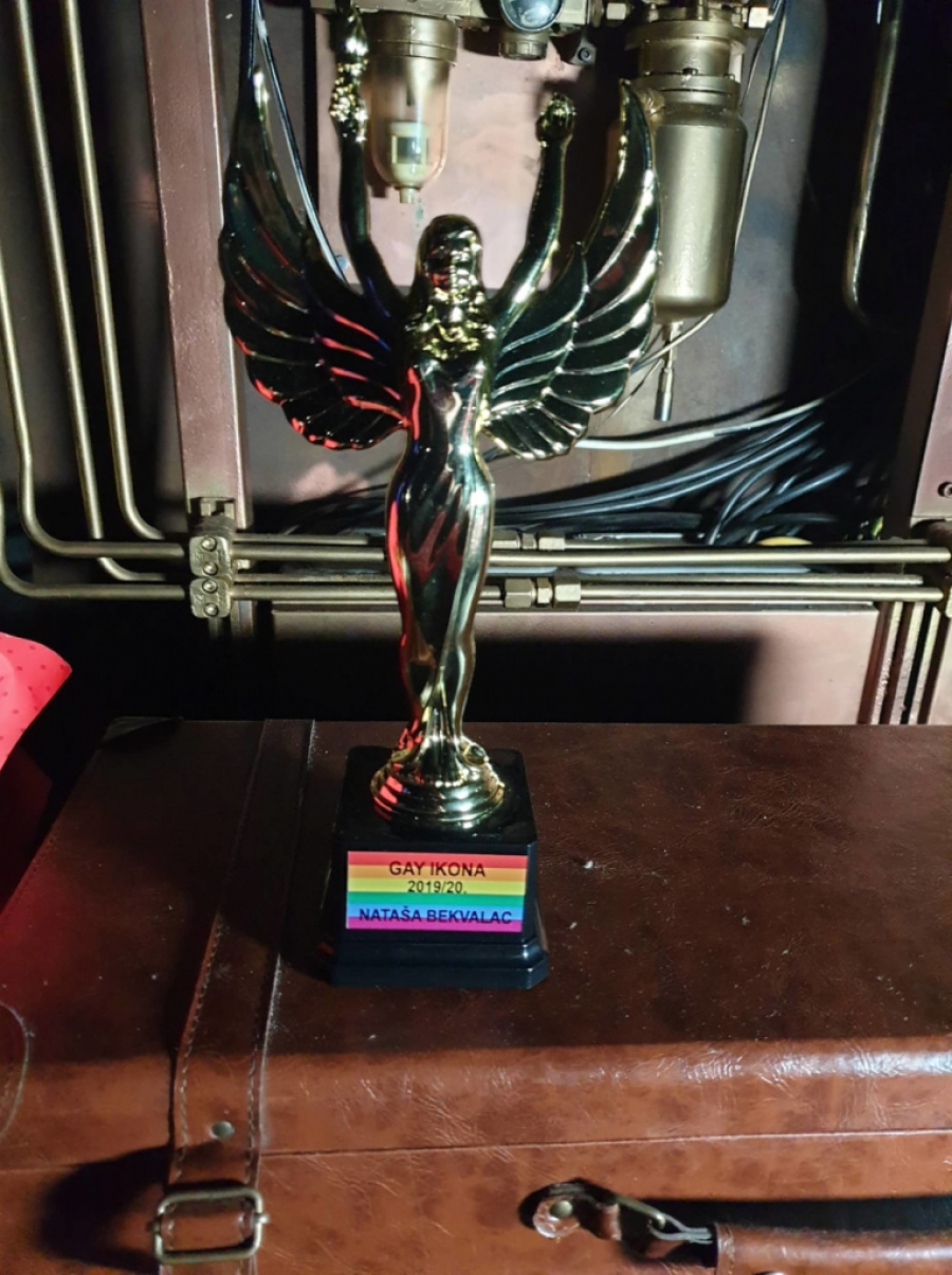 Nataša je ovo priznanje dobila od gej zajednice zbog svesrdnog zalaganja za njihova prava, ali i nastupa na prvoj "paradi ponosa".