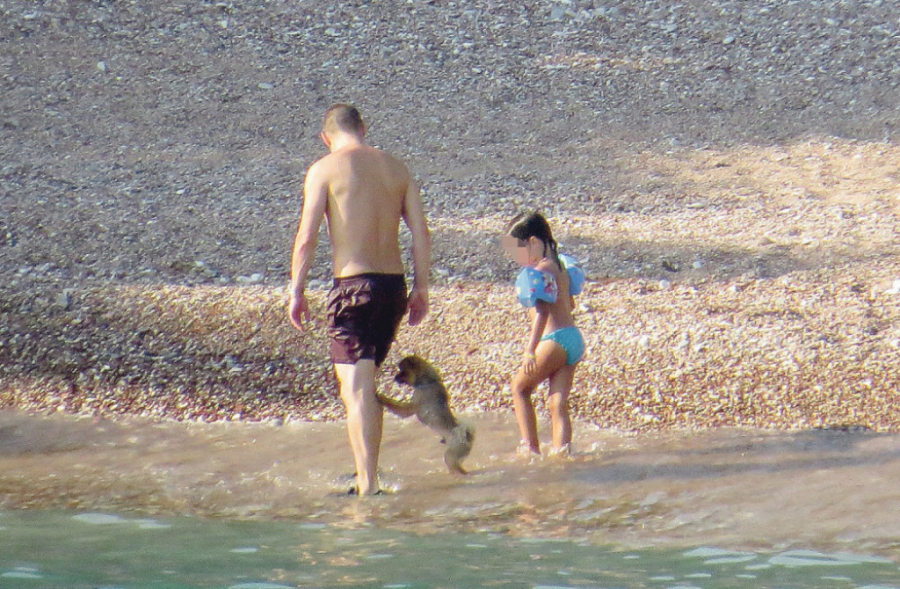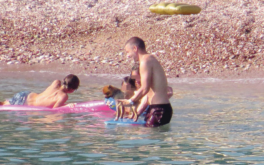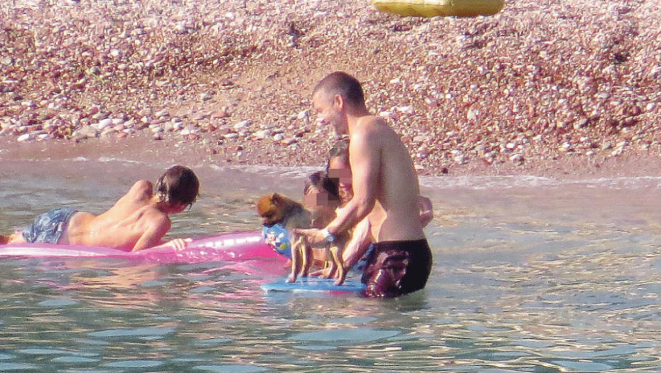 Bivši fudbaler se sve vreme brčkao sa svojim ljubimcem, dok se njegova supruga sunčala na plaži. Nikola je uživao u morskoj vodi, a ljubimac je skakutao okolo. U jednom trenutku ga je fubaler uneo u vodu i popeo na gumu koju je pozajmio od okupljenih mališana.