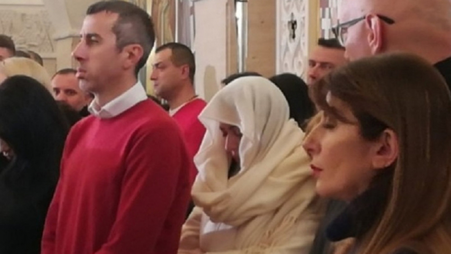 Ona je pokušala da prođe neopaženo, pa je stala iza crkvenih stubova, a lice je prekrila maramom. Izjave nije želela da daje, već se ljubazno zahvalila medijima. Sa njom je bila i sestra Lidija Ocokoljić sa porodicom.
