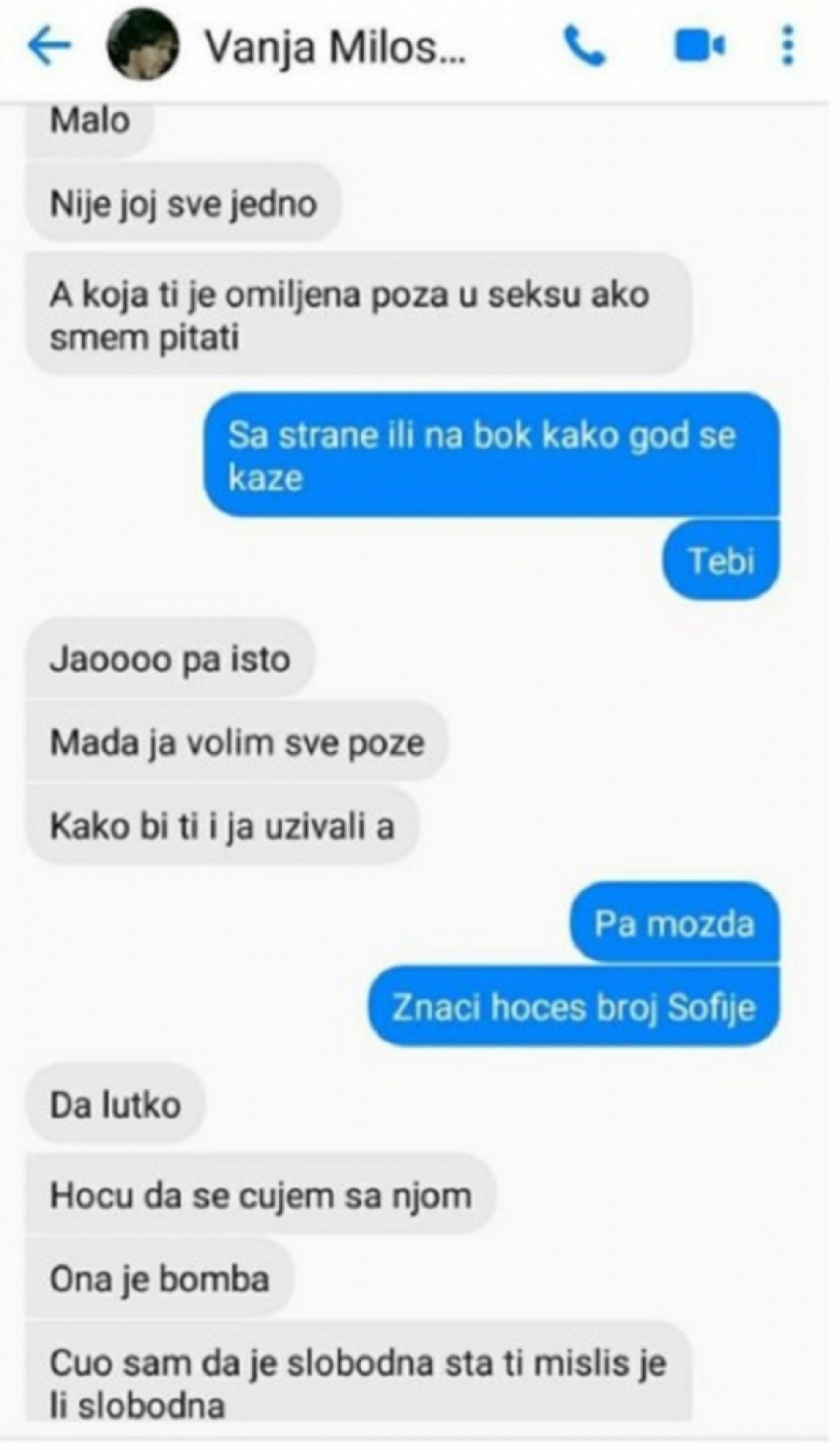 U pokušaju da sebe predstavi kao seksualnog pastuva, Milošević se ne libi da otkrije i šta sve voli i radi u krevetu i njegova partnerka, a vrhunac bizarnosti nailazi kada od devojke koju muva traži da ga spoji sa poznatom manekenkom Sofijom Milošević, koja mu se mnogo sviđa.
