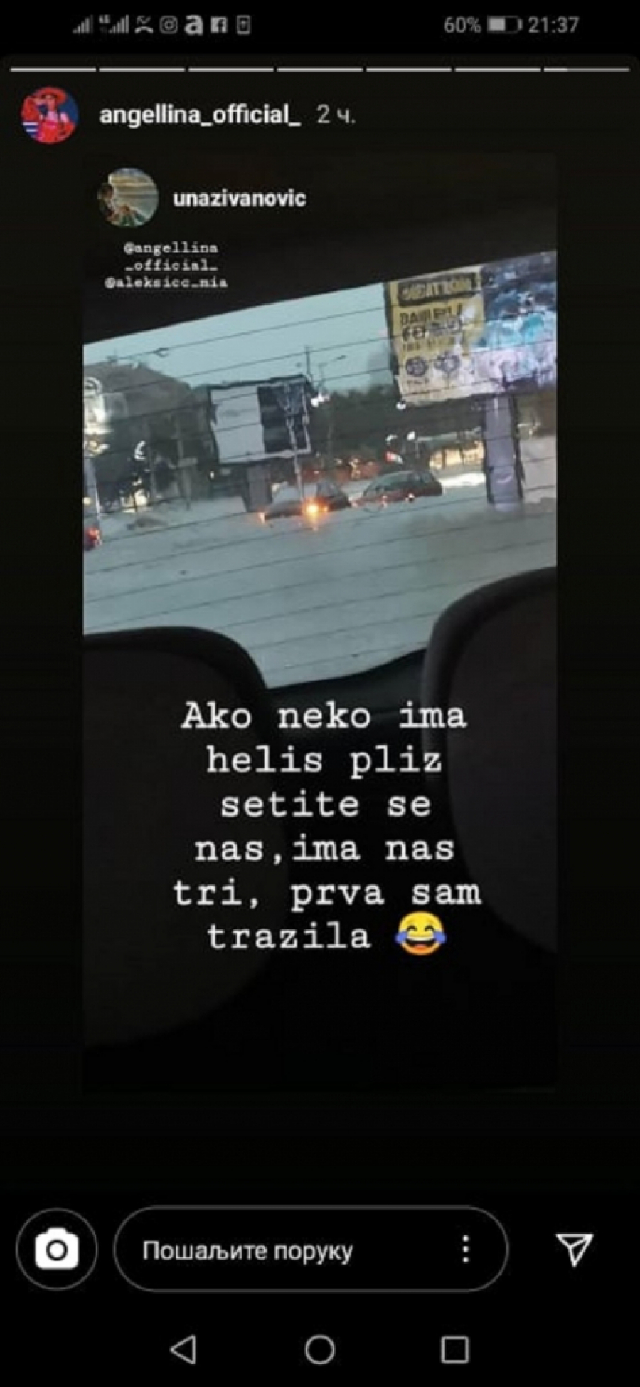 " Ako ima neko helis pliz, setite nas, ima nas tri, prva sam tražila" - napisala je Angelinina prijateljica koja je u tom trenutku bila pored nje.