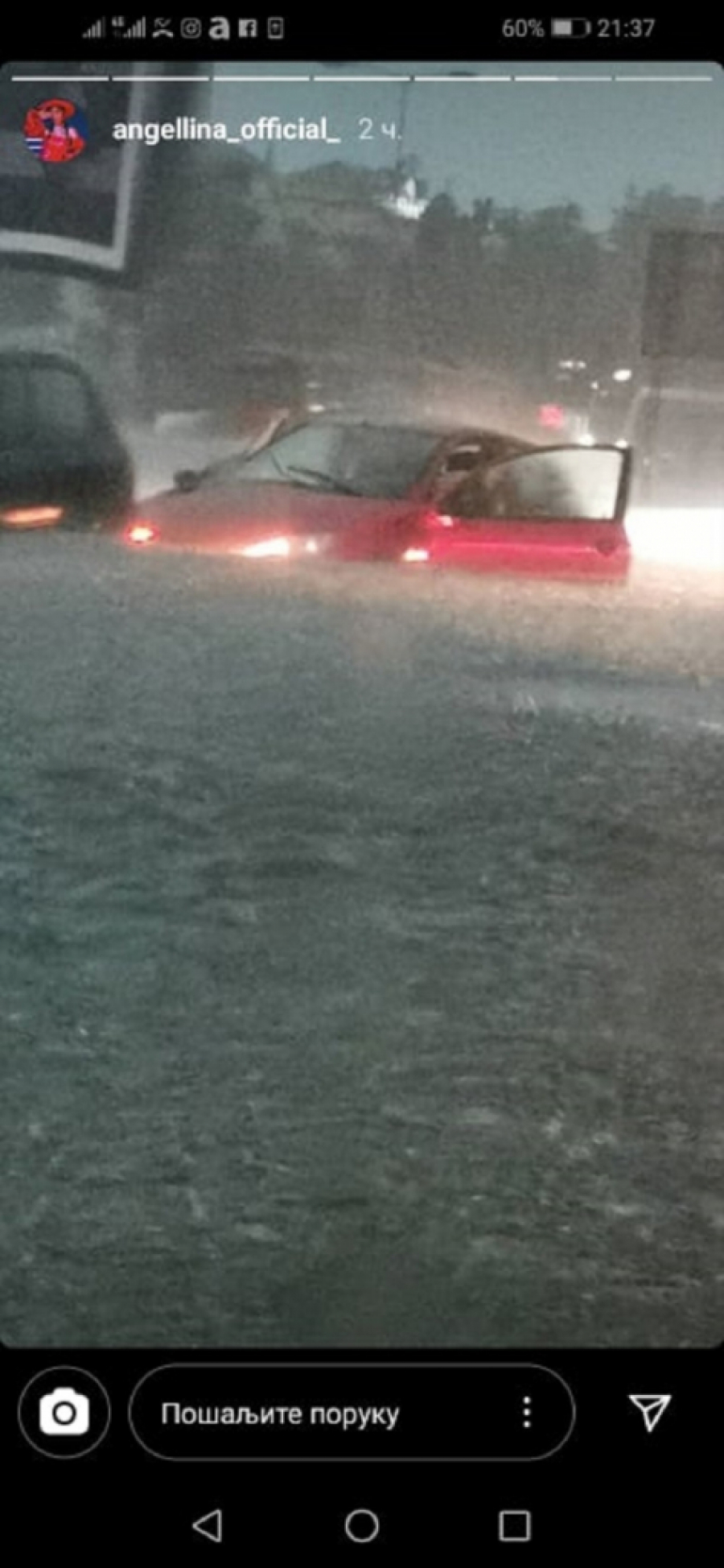 Kao i mnoge beograđane, situacija usled velikih padavina omogućila je mladu pevačicu da na nastavi svoju vožnju, pa je usled nepogode morala da napusti svoje vozilo.