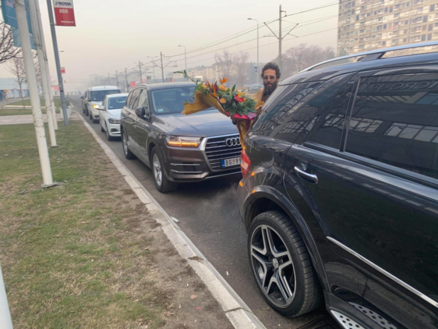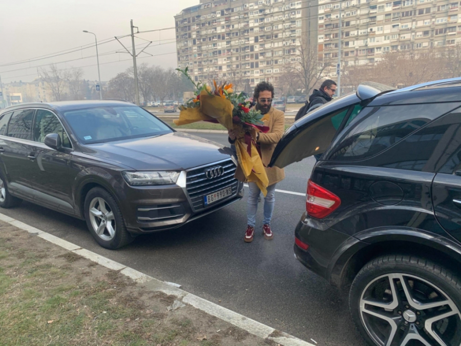 Za razliku od prvog puta kada je Veljko dolazio po svoju suprugu Svetlanu Seku Aleksić i sina Jakova, kada je automobil parkirao iza bonice kako i se sakrio od fotoreportera, ovog puta puta parkirao je tik ispred samog porodilišta.