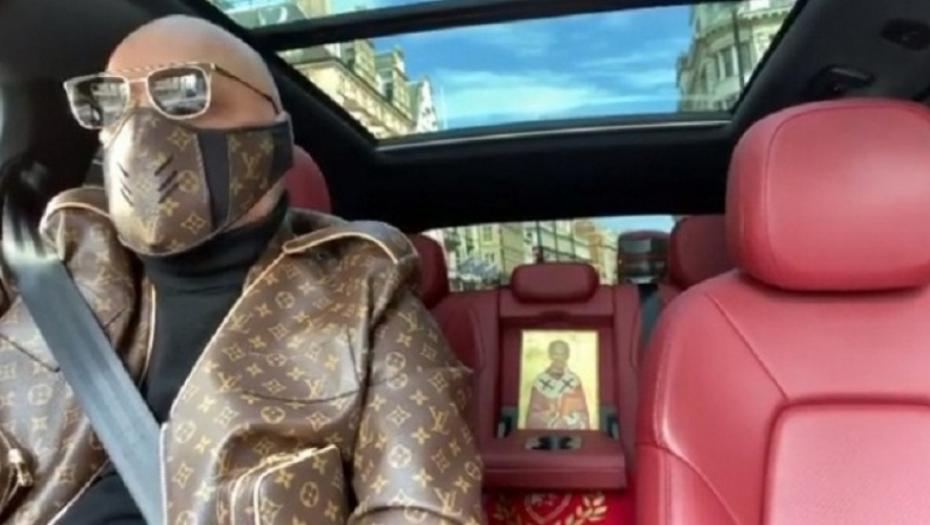 Ono što je svima odmah upalo u oči jeste maska na kojoj je logo "Luj Vitona", kao i jakna istog brenda, dok se u pozadini vidi da Goran u autu drži i ikonu Svetog Nikole.