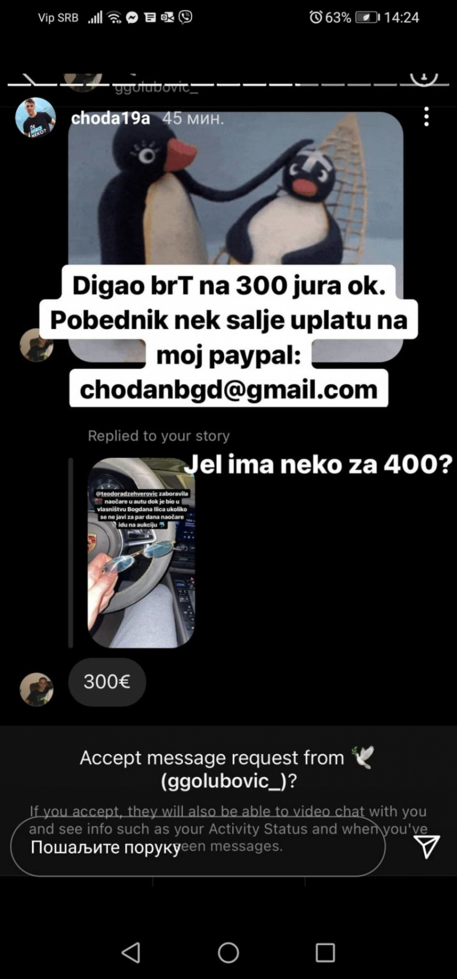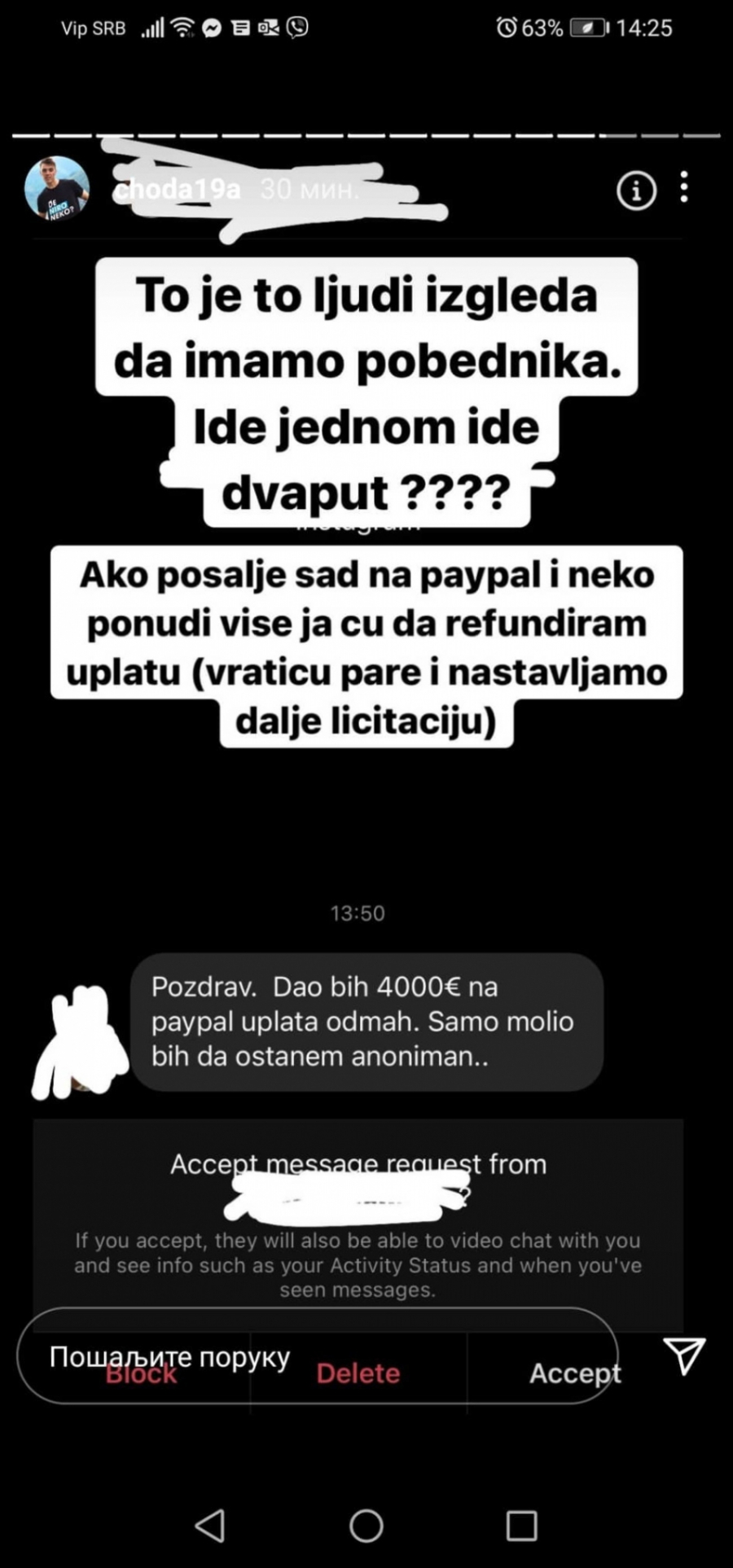 Jutjuber je dao početnu cenu od 10 evra, nešto kasnije desile su se i veće ponude, sve do samog kraja kada je jedan od njegovih pratilaca rekao da za njih želi da plati iznos od neverovatnih 4.000 evra.