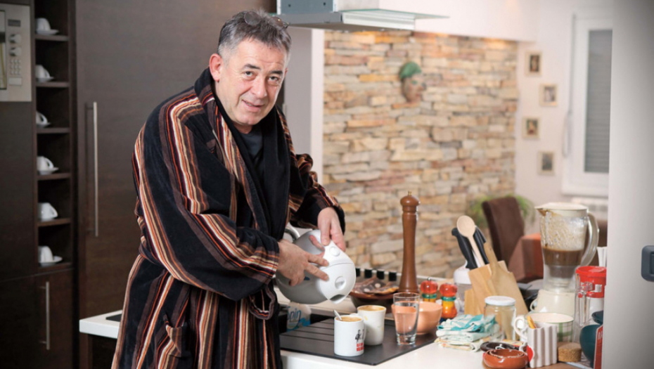 Tu je fotografija moje majke, potom sestre pored, a okolo su fotografije s putovanja: Dara Džokić, Svetlana Bojković, Žarko Laušević... Moj drug iz detinjstva... Kad god pogledam tu veliku fotografiju, setim se svih tih putovanja, ljudi, gostovanja... Iznad je fotografija moje majke i oca. On je tu imao godina koliko i ja sada, kada se oženio mojom majkom - ispričao je Mima s osmehom.