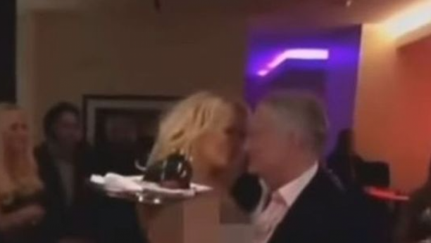Na snimku se vidi kako potpuno gola glumica pred okupljenima nosi rođendansku tortu do Hefnera i zatim ga ljubi u obraz i grli, dok joj on pogledava u grudi.