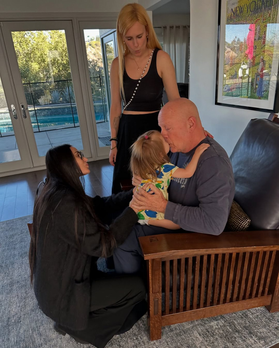 - Srećan rođendan, BV. Volimo te - napisala je ona. Na fotografijama Brus pozira sa ćerkama i unukom. Na jednoj fotografiji on je u zagrljaju sa Demi, a čini se da je bolest legendarnog glumca sve vidljivija.