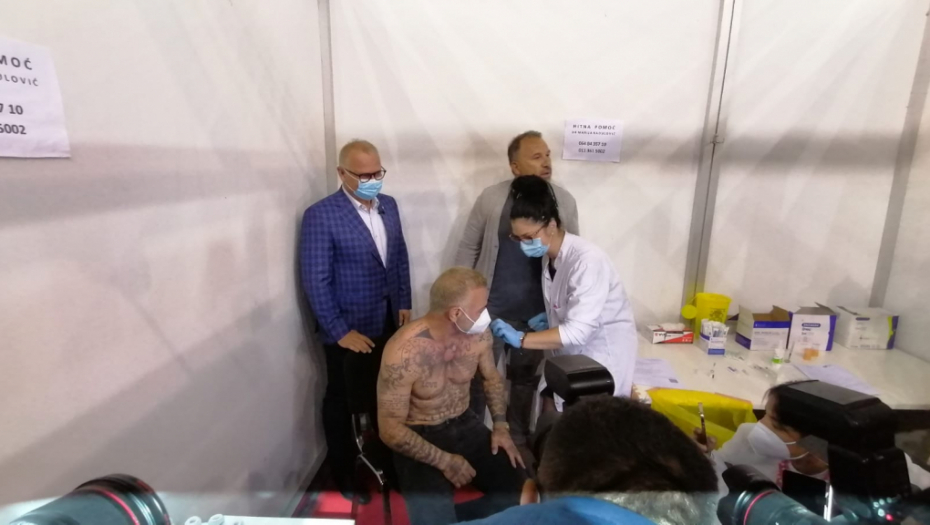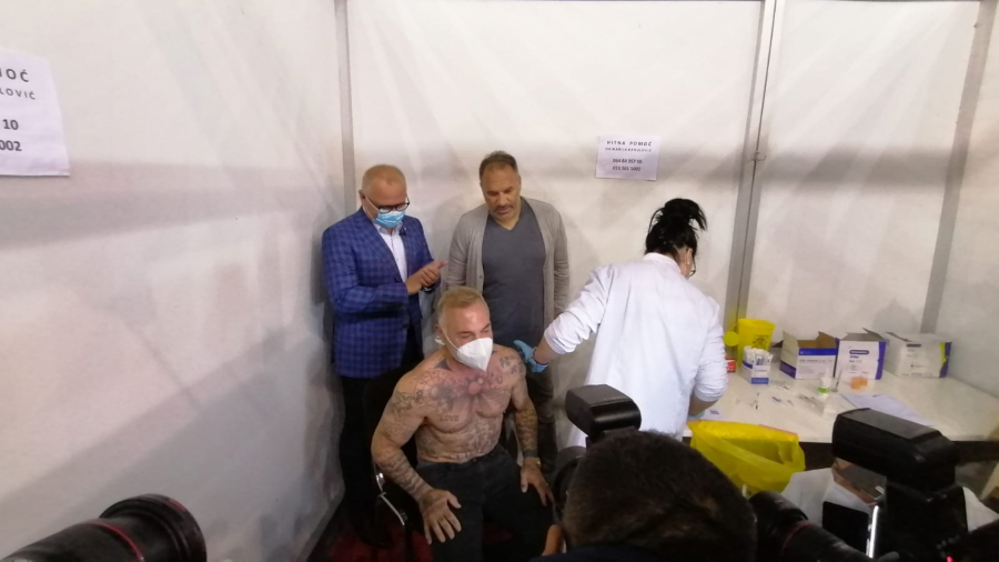 Poznati Italijan je inače istakao da ima srpske gene i nakon primljene revakcine je prišao fanovima i potpisao im se na majice sa njegovim likom.