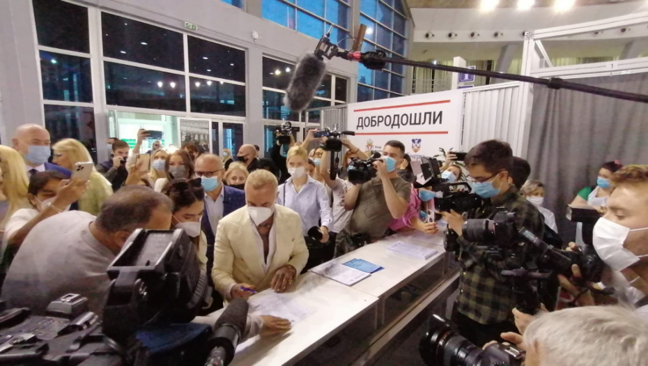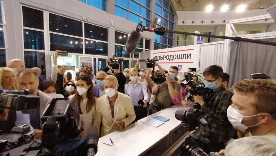Milioner je u Beograd doputovao privatnim letom, a na Beogradskom sajmu dočekao ga je zamenik gradonačelnika Beograda Goran Vesić.