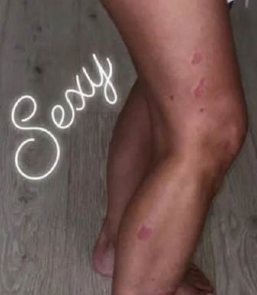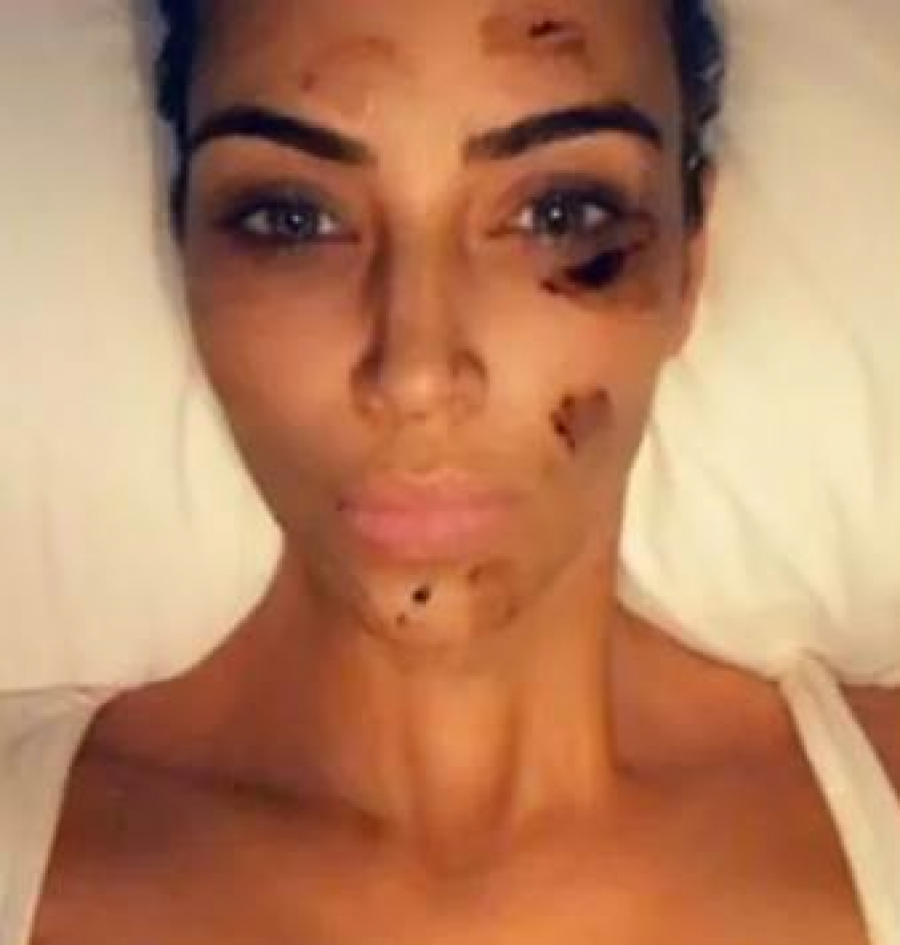 Podelila je fotografiju iz kabine i napisala: "Moja nova najbolja prijateljica #psorijaza." Kim je potom podelila fotografiju na kojoj je vidljiva psorijaza, uz natpis "Seksi" i to sve bez fotošopa. Podelila je i selfie sa smeđom mašću po celom licu i telu, napisavši: "Psorijaza je sr*nje!".