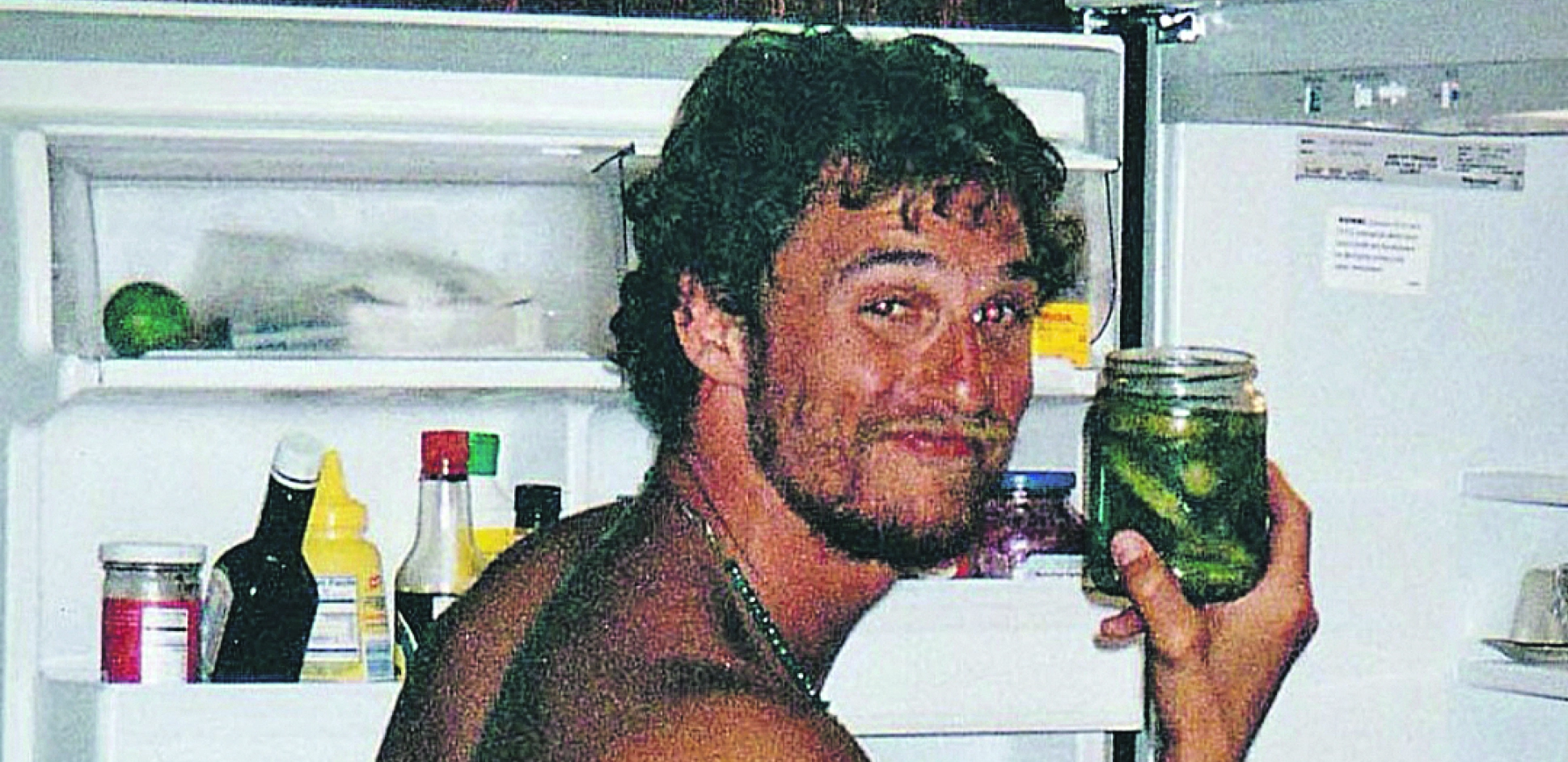 Na njoj zgodni Metju čuči potpuno go ispred frižidera i drži u ruci teglu s kiselim krastavcima. Fotografiju je objavio povodom Svetskog dana kiselih krastavaca.