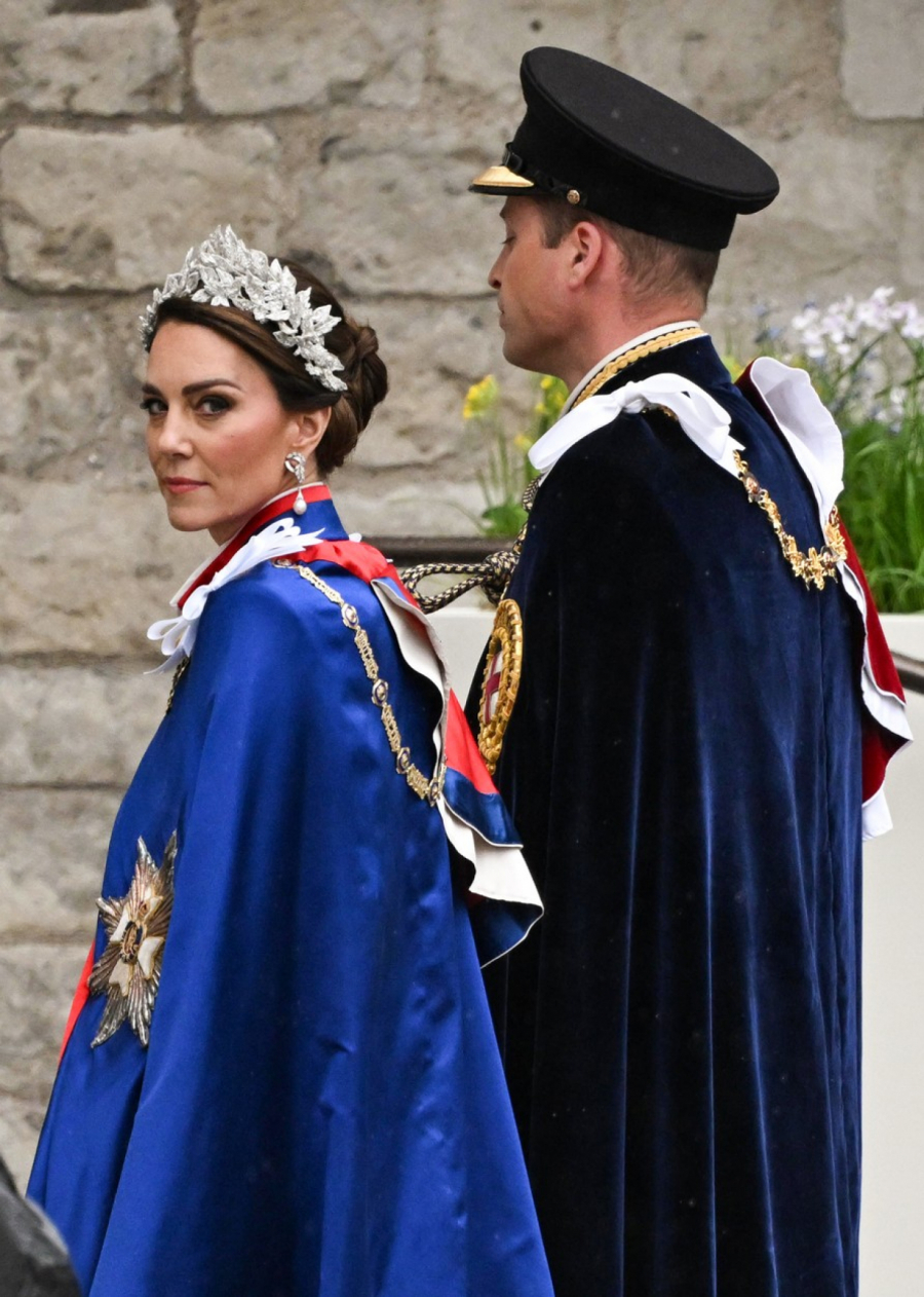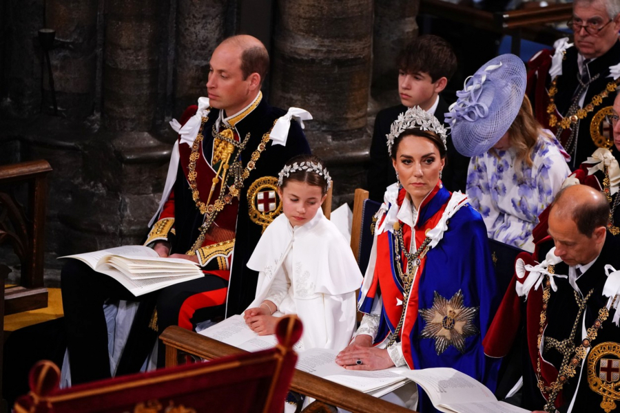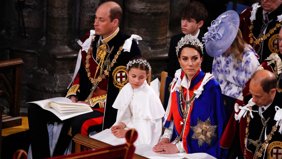 Princ Vilijam došao je na krunisanje kralja Čarlsa sa suprugom, Kejt Midlton, i decom. Bilo je nagađanja da su princ i princeza od Velsa kasnili jer su na prenosu viđeni kralj Čarls i kraljica Kamila kako dolaze pre njih. Međutim, pojavili su se čim je ceremonija počela.