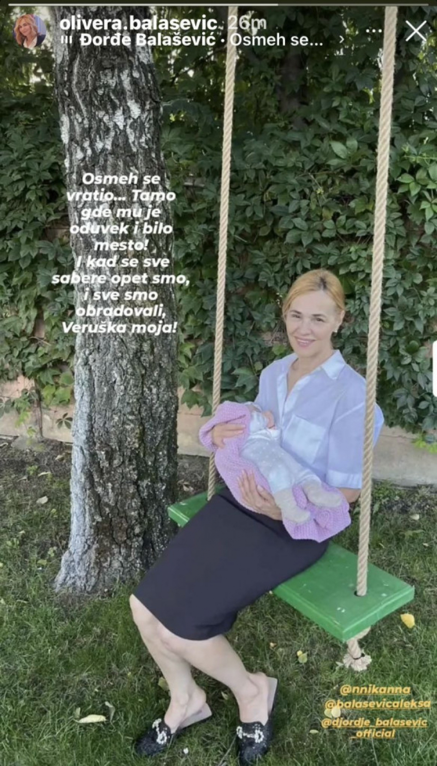 Čitava domaća javnost pitala se kako će Olivera Balašević nakon Đoletove smrti nastaviti dalje. Hoće li prigrliti tugu ili pak naći način da srce otvori za neke nove radosti. Nije dugo prošlo i atraktivna književnica, čuvena po svojoj lepoti, odabrala je drugu stavku i za početak se okrenula porodici, sinu Aleksi, ćerkama Jeleni i Jovani, i prekrasnim unukama zbog kojih ne skida osmeh sa lica.