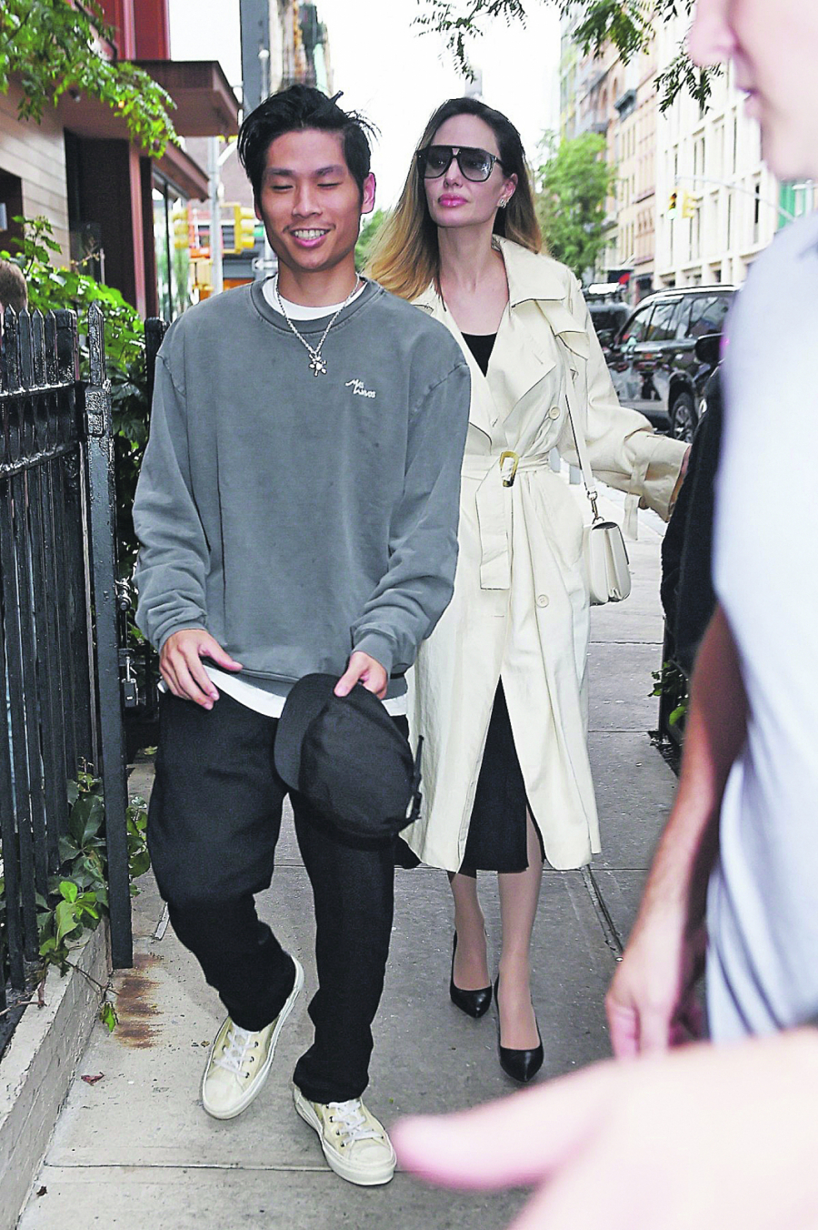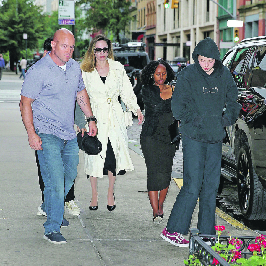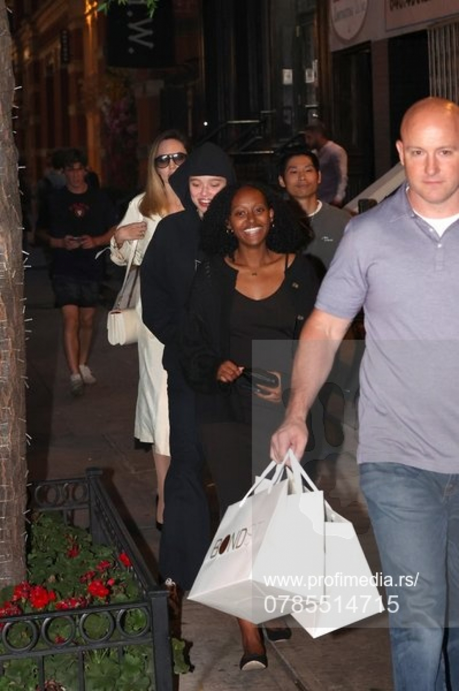 Andželina, koju je Pit tužio zbog prodaje dela vinograda u Francuskoj, uslikana je u Njujorku ispred jednog japanskog restorana u društvu sina Paksa, i ćerki Zahre i Šajlo.