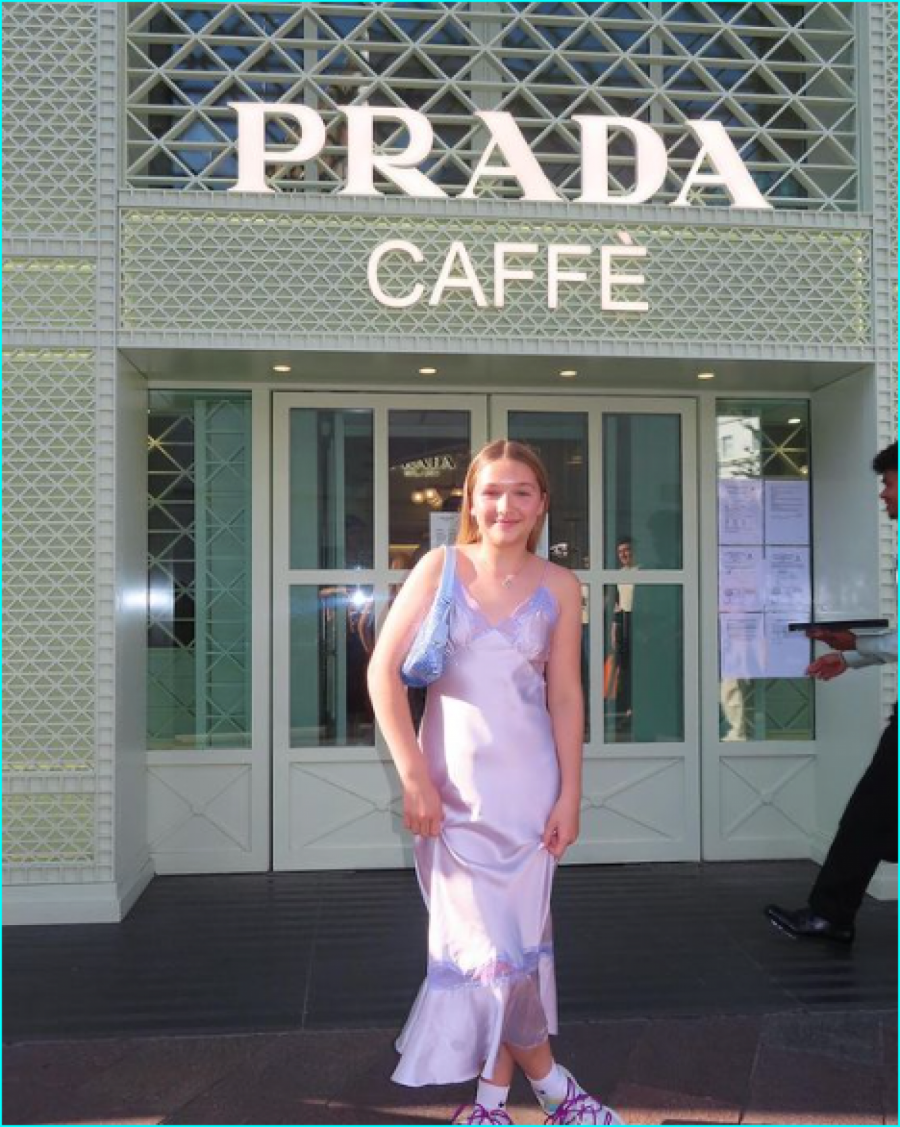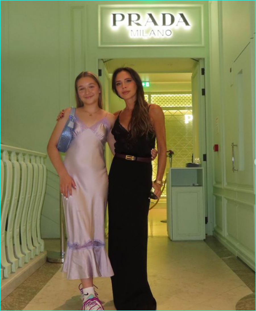 Na fotografijama koje je podelila Viktorija poznata porodica uživa u popodnevnom čaju u kafeu „Prada“ u „Harodsu“, a Harper je uslikana kako nosi ljubičastu maksi-haljinu sa čipkastim detaljima – model za koji su fanovi smatrali da je previše zreo za mladu devojčicu.