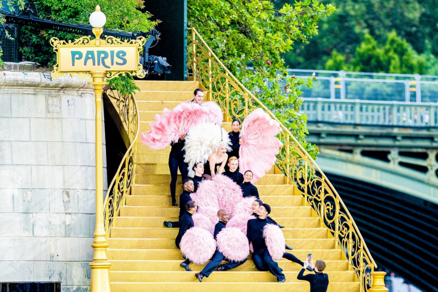 Na sceni se pojavila u sofisticiranoj crnoj haljini sa impresivnim dugim šlepom, ali je pravo iznenađenje usledilo kada su njeni plesni izvođači deo kostima gotovo "skidali" tokom performansa, ostavivši je u korsetu i uskom šortsu. Njeno energično izvođenje u stilu kabarea oduševilo je publiku koja je uživala uz obalu reke Sena.