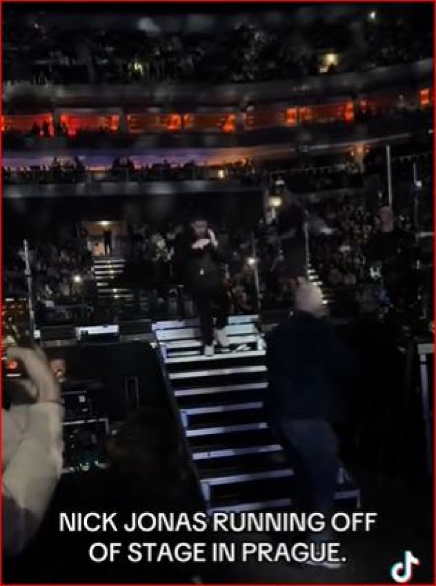Nik Džonas bio je na koncertu "Jonas Brothers" u Pragu, a u jednom momentu je pobegao sa bine nakon što ga je neko nanišanio laserom.
