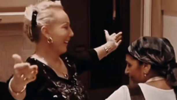 Lepo raspoložena pomoćnica pevala je držeći u rukama ogromnu tepsiju, dok joj se Brena pridružila tapšanjem i gromoglasnim smehom.