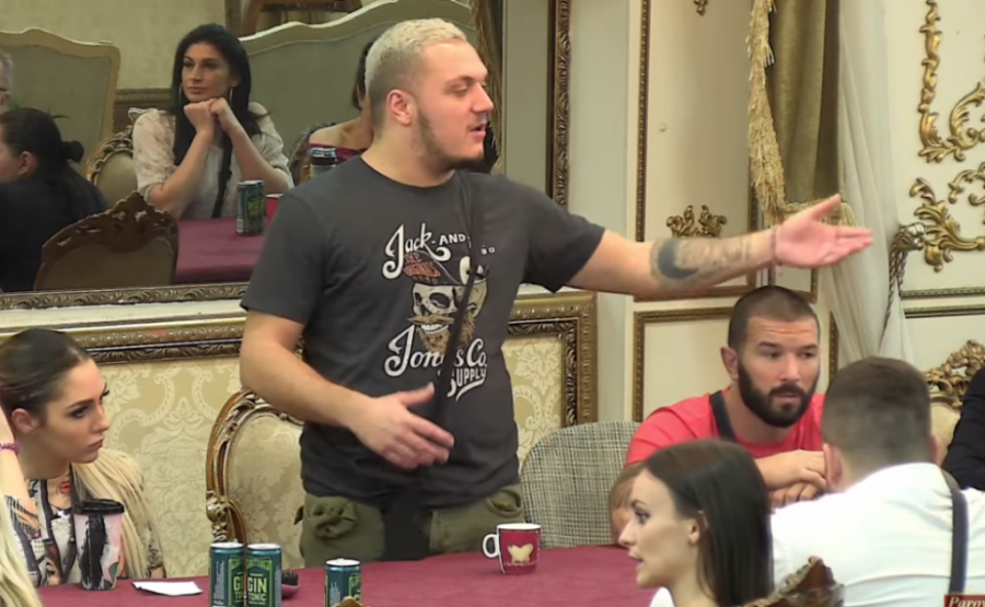 - Sram te bilo, treba Uroš ovde da uđe, da vidi kakva si, sram te bilo - vikao je Gastoz, dok je Šmizla takođe urlala i skakala po stolici.