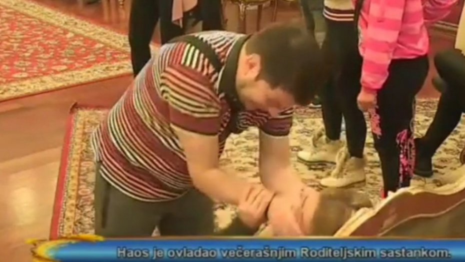 Samo nekoliko sekundi kasnije na snimku se vidi kako Ivan maltretira devojku Jelenu jer je ona sve vreme pokušavala Bakiju nešto da objasni.