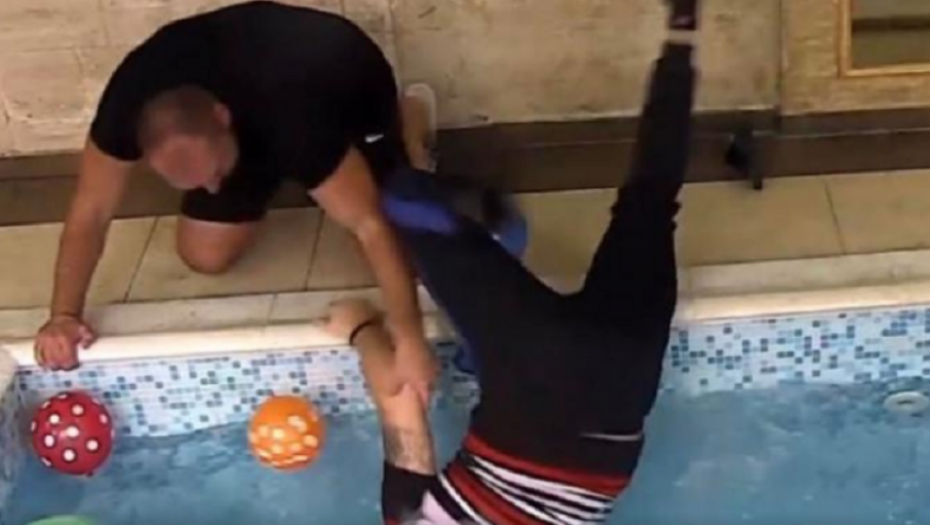 On je upao u bazen na glavu, a Srba i Nikola Lakić su pritrčali da mu pomognu.