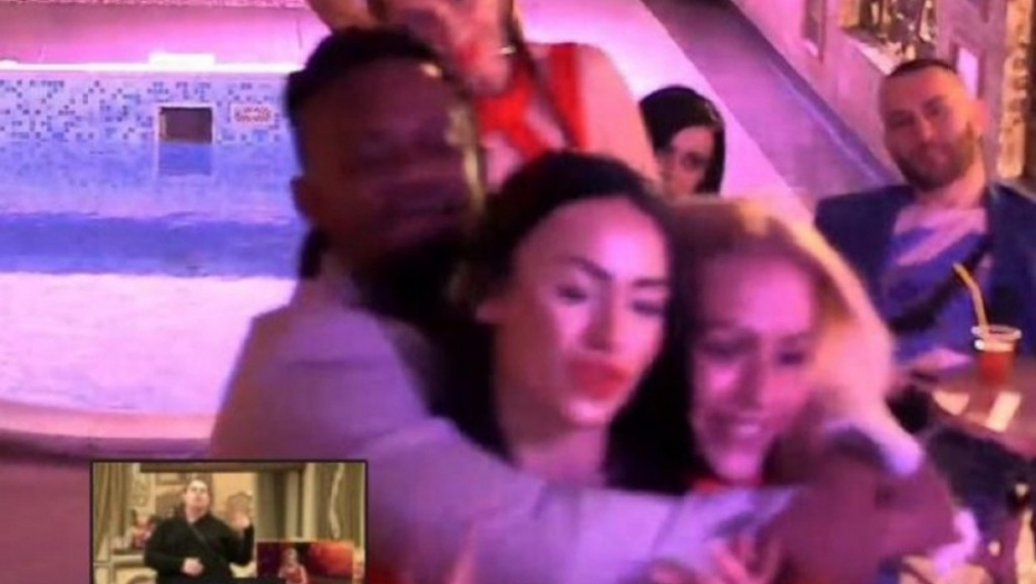 Dok su pored bazena igrale Nataša i Ivania, on im je prišao sa leđa i obe ih obgrlio i nastavio da pleše sa njima u stiskavcu.