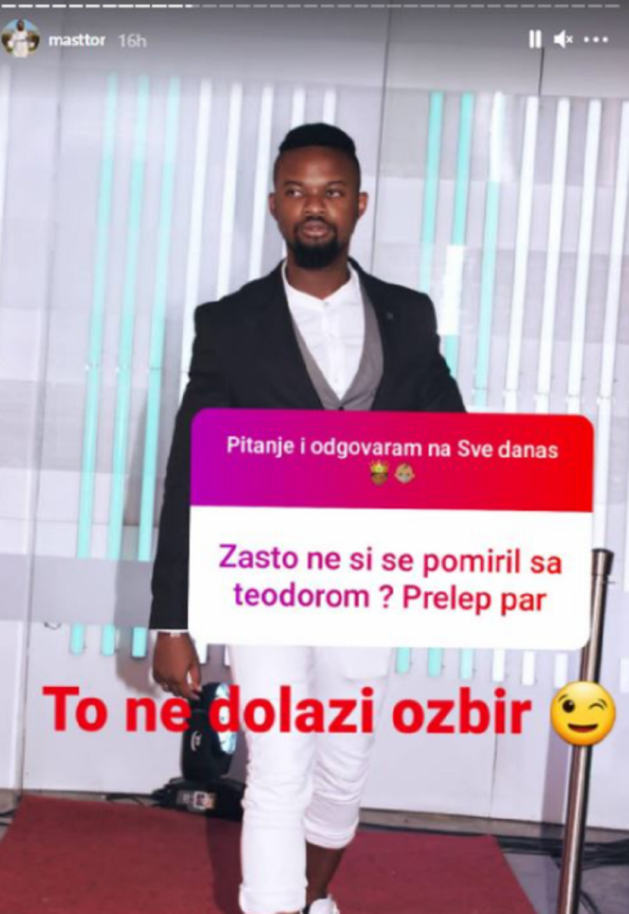 Mastor nakon toga što je postao roditelj dečaka rešio da veče provede odgovarajući fanovima na pitanja. Trudio se da objasni u kakvom je odnosu sada sa Teodorom kao i detalje njihovog odnosa.